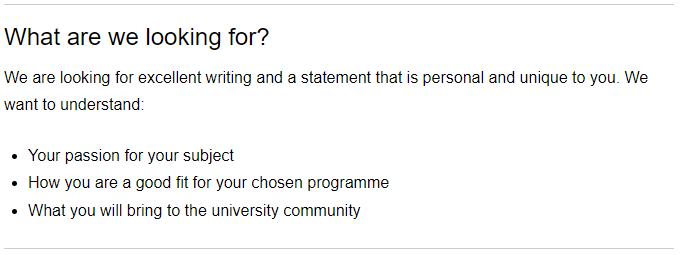 关于好的PS怎么写,许多大学的官网也给出过一些分享,以UCL为例,可以看到招生官最在意的因素有以下三点: