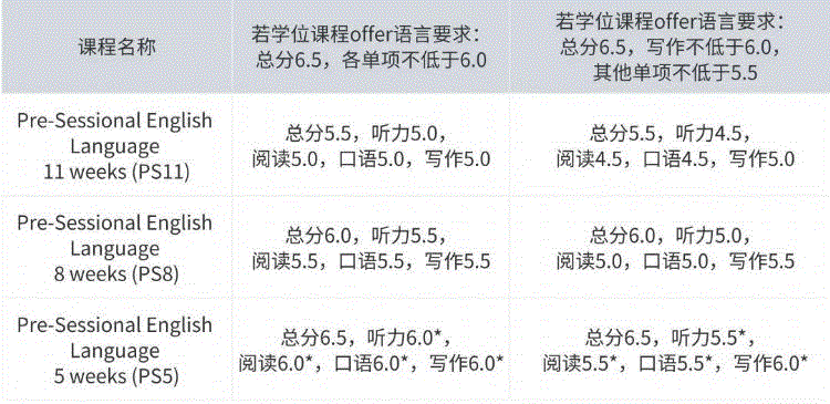 由于语言课均改到线上授课不需要申请签证,大学可以接受下面英语语言成绩配读学前语言课: