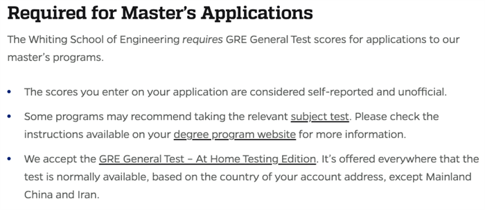 约翰·霍普金斯大学明确了Computer Science(MSE)等专业的申请需要提交GRE成绩。