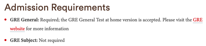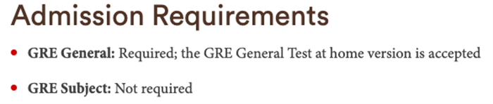 Engineering(工程)专业也明确GRE要求,同时,该专业明确写明接受GRE在家考成绩。