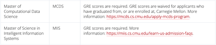 卡内基梅隆大学的计算机科学院大部分专业都需要提供GRE成绩: