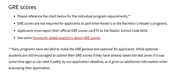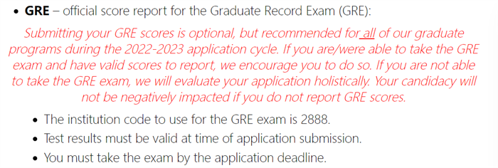 宾大工程与应用科学学院建议所有2022-2023申请季的学生,提交GRE成绩并提供有效的成绩报告。如果学生无法参加GRE考试,学校也会通过其他材料全面评估该学生的申请。