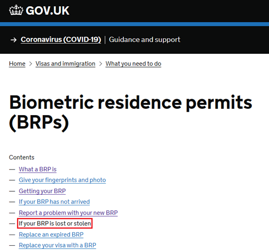 如果是在英国境内丢失BRP,你需要申请办BRP的替换卡,也就是BRP replacement。