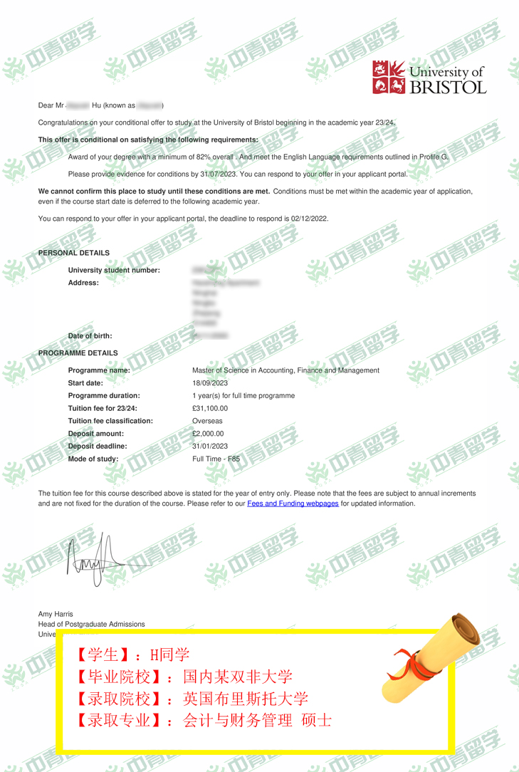 【录取院校】:英国布里斯托大学