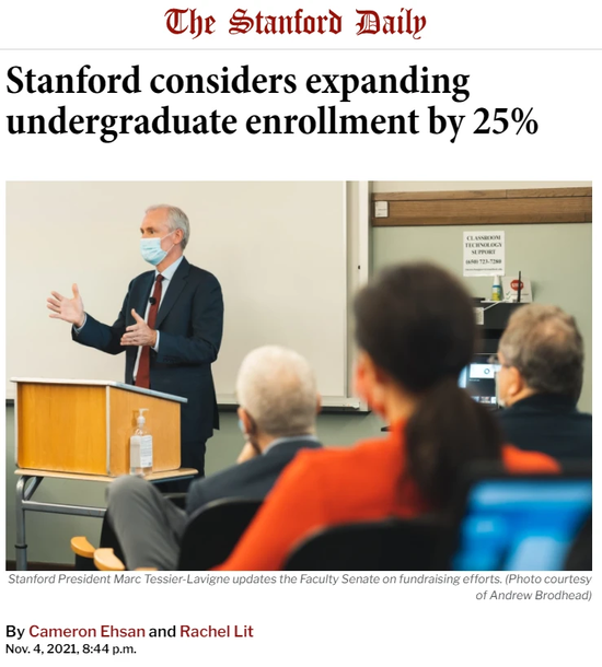 往年斯坦福录取约中国学生40人左右,按照扩招规模和国际生占比等比例计算,有希望每年可以大致增加10人。