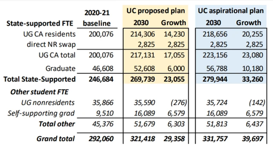 UC proposed plan:将在2020-2021学年的学生基数上扩招29,358人;