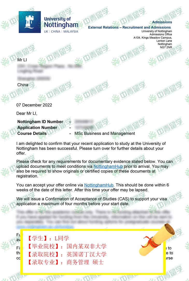 【录取院校】:英国诺丁汉大学