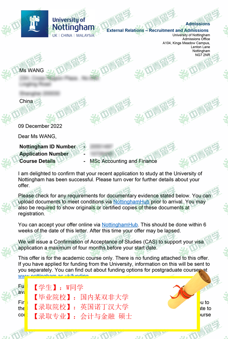【录取院校】:英国诺丁汉大学