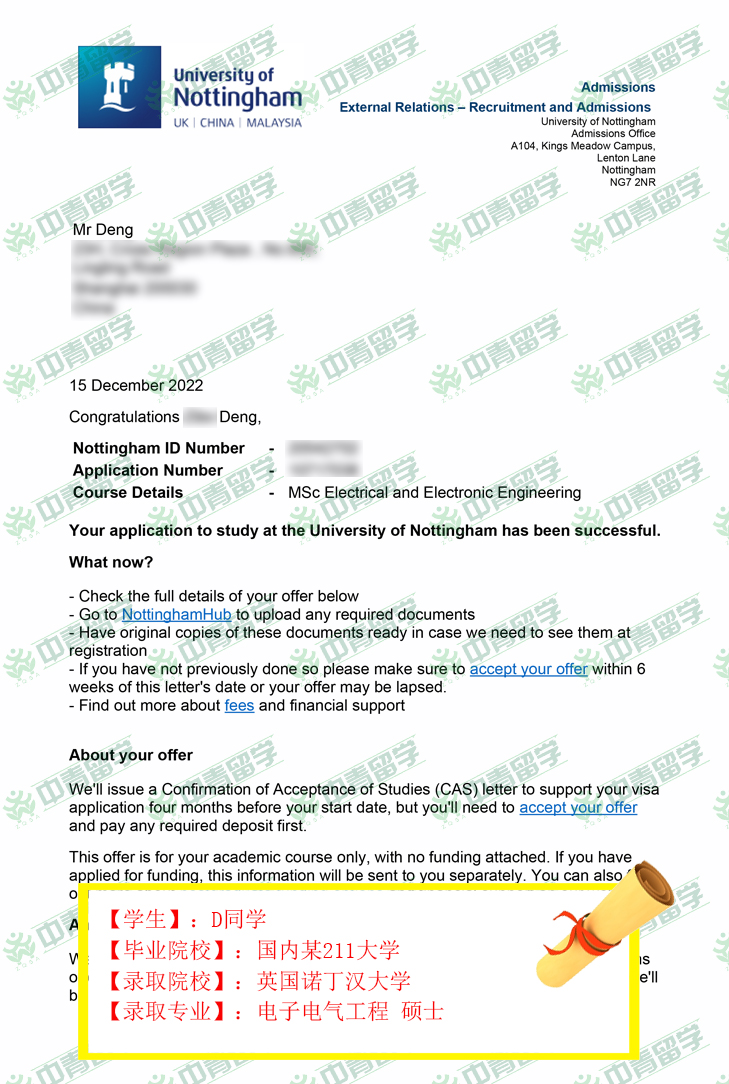 【录取院校】:英国诺丁汉大学