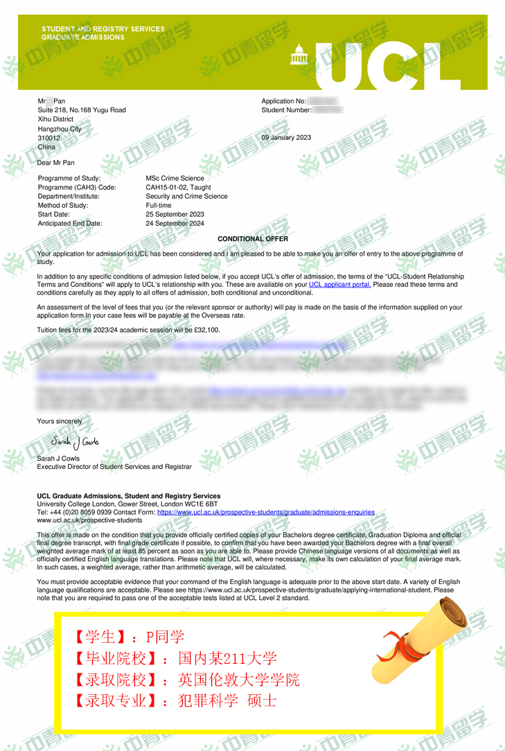 【录取院校】:英国伦敦大学学院