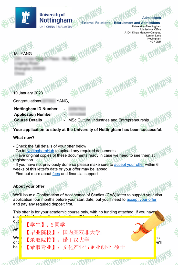 【录取院校】:英国诺丁汉大学