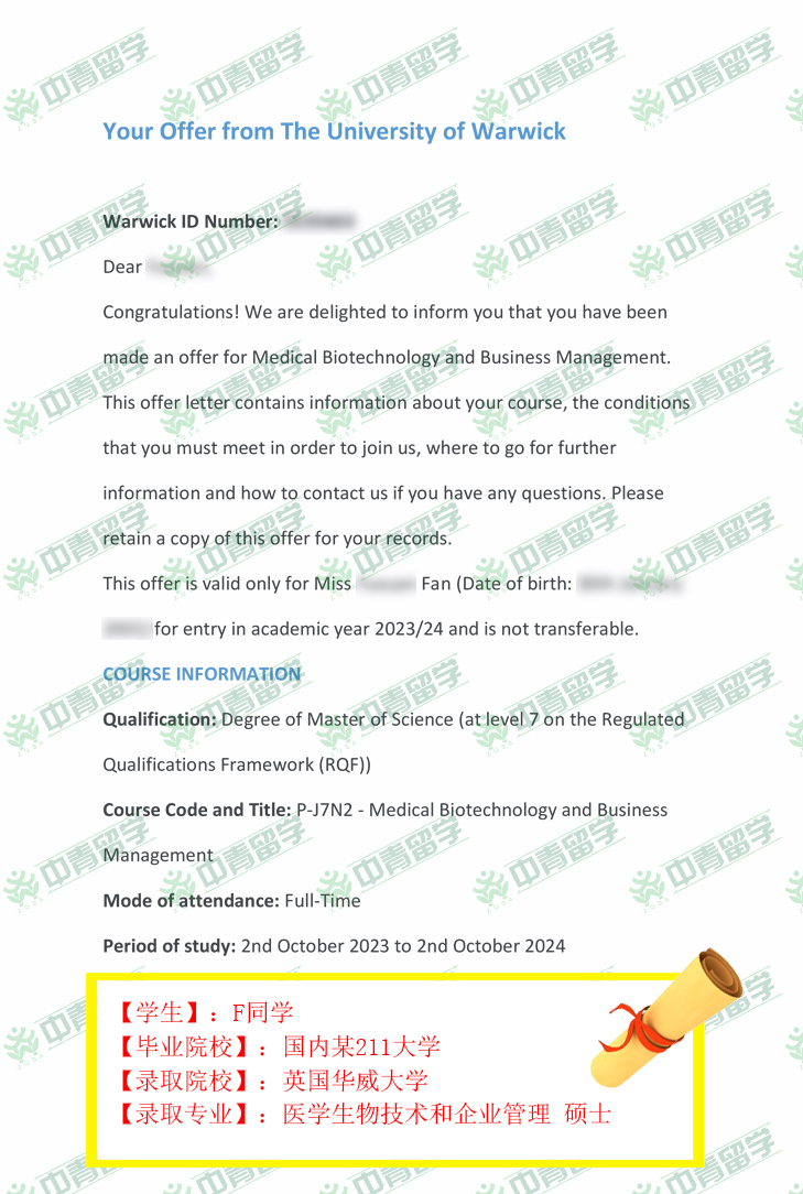 【录取院校】:英国华威大学