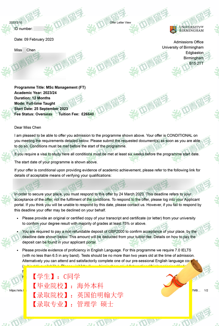 【录取院校】:英国伯明翰大学