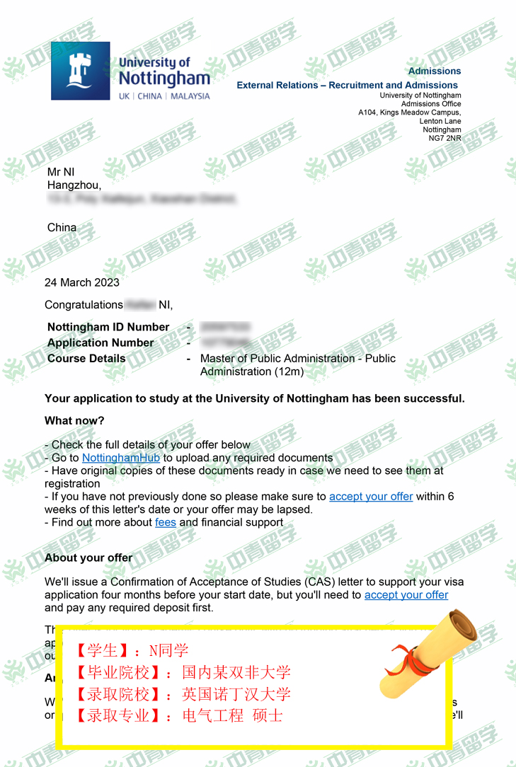 【录取院校】:英国诺丁汉大学