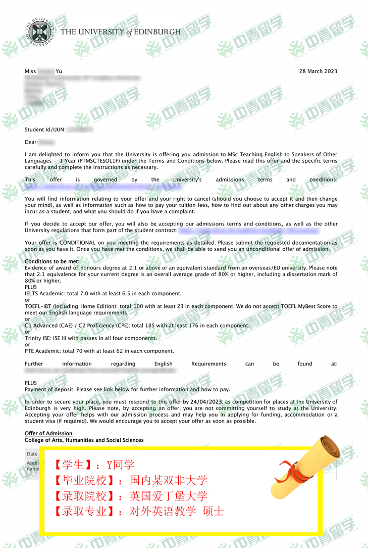 【录取院校】:英国爱丁堡大学