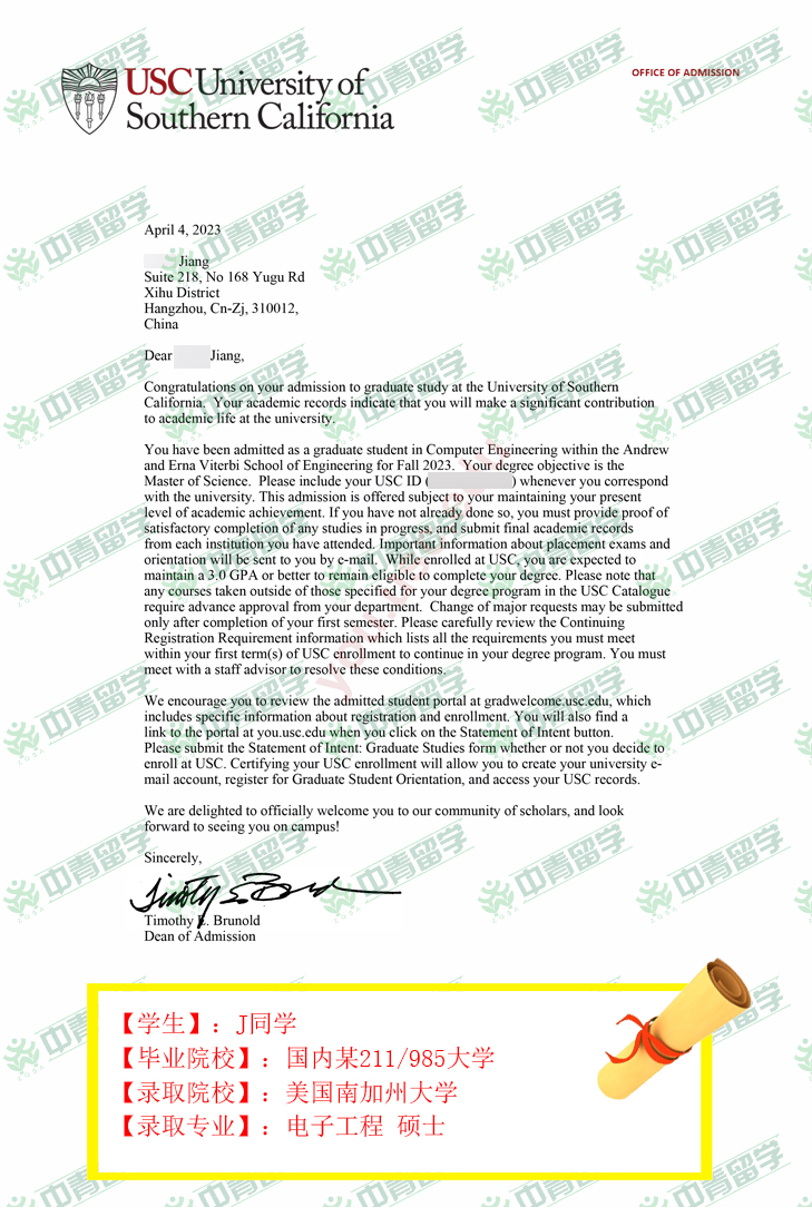 【录取院校】:美国南加州大学