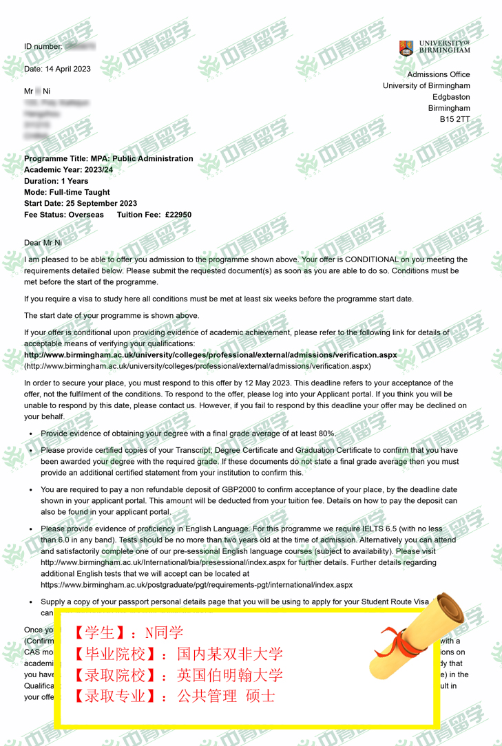 【录取院校】:英国伯明翰大学