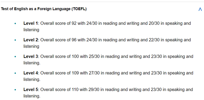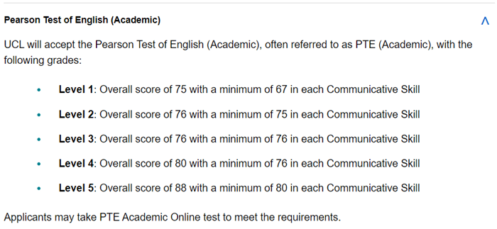 在官网公布的可接受的所有语言成绩中,UCL悄悄改变了ESL的相关申请条件,即语言要求为Level 3及以上(包含Level 3)的专业,不再接受ESL来满足语言成绩要求。