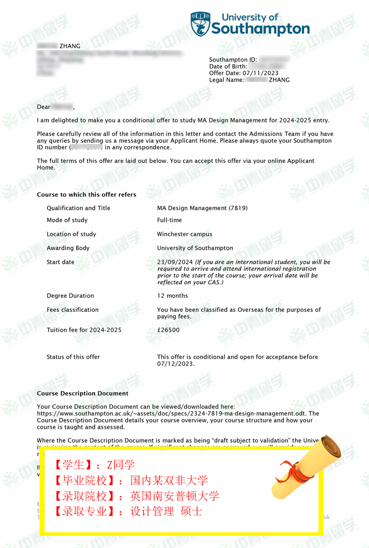 【录取院校】:英国南安普顿大学