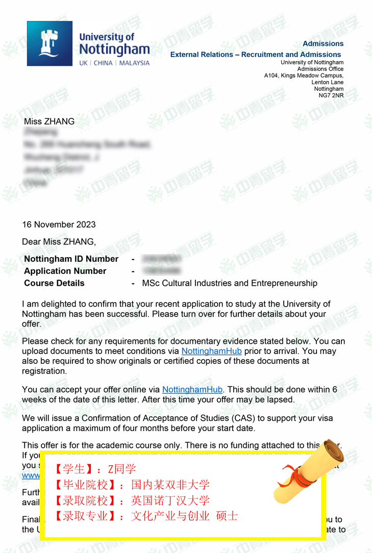 【录取院校】:英国诺丁汉大学