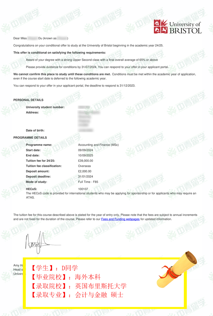 【录取院校】:英国布里斯托大学
