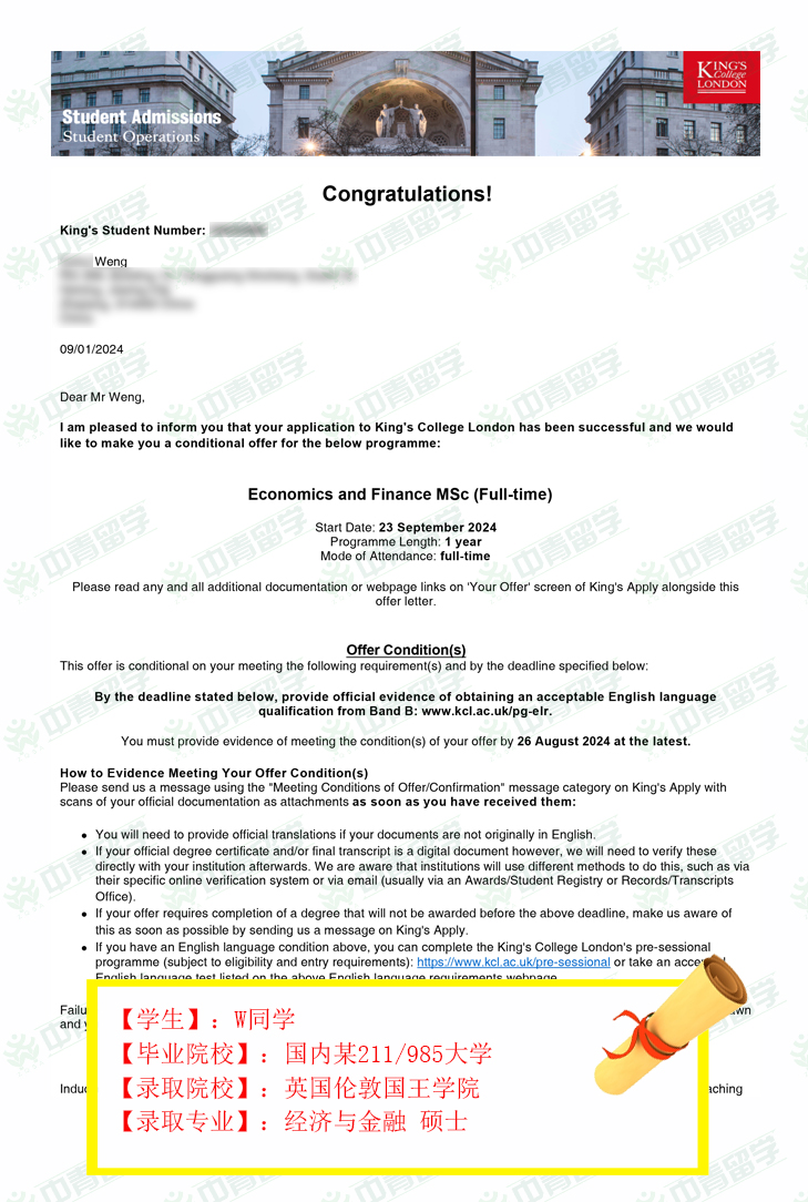 【录取院校】:英国伦敦国王学院