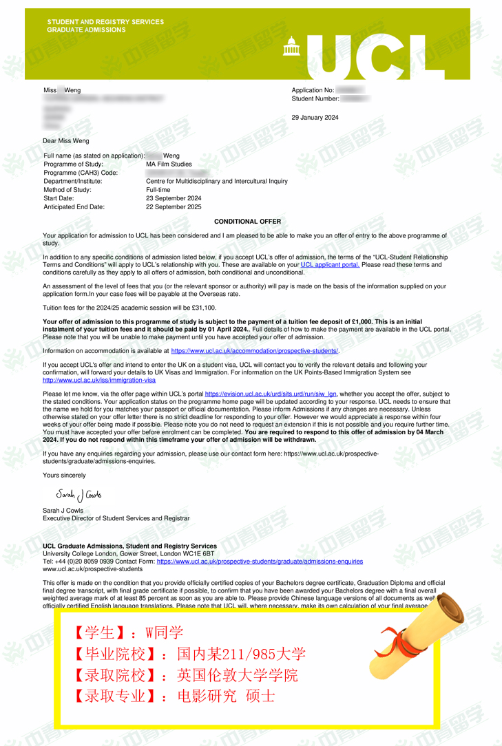 【录取院校】:英国伦敦大学学院