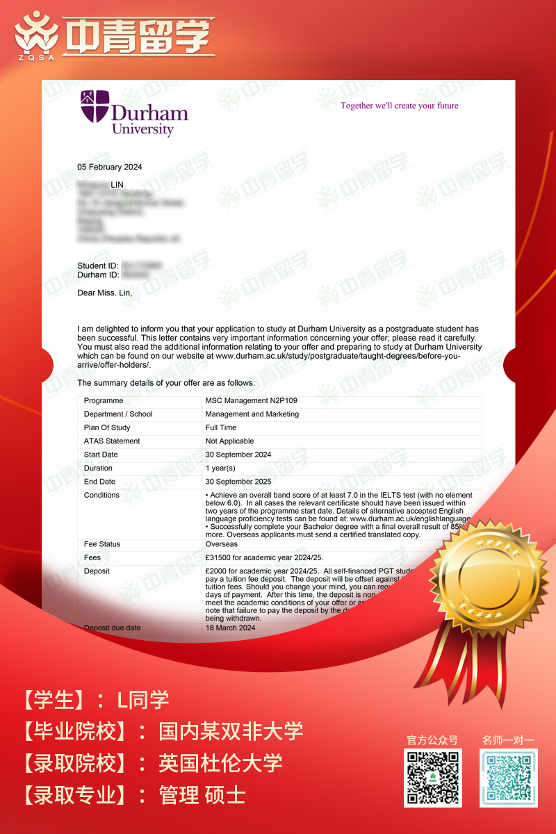 【录取院校】:英国杜伦大学