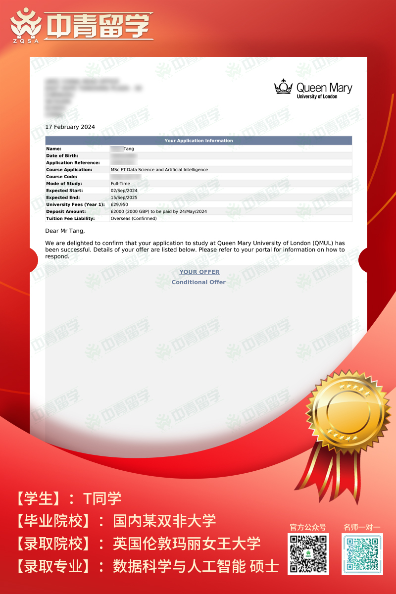 【录取院校】:英国伦敦玛丽女王大学