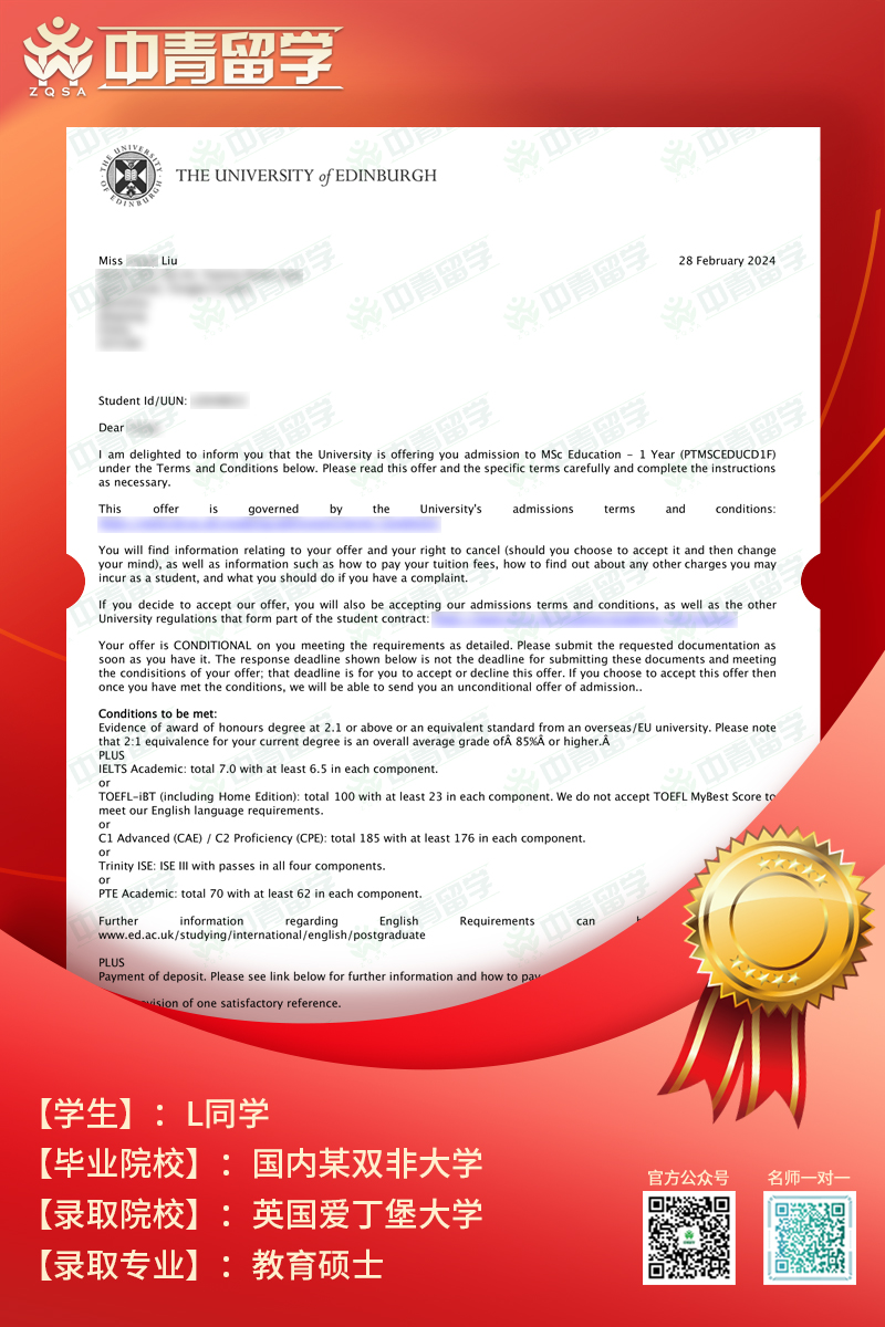 【录取院校】:英国爱丁堡大学