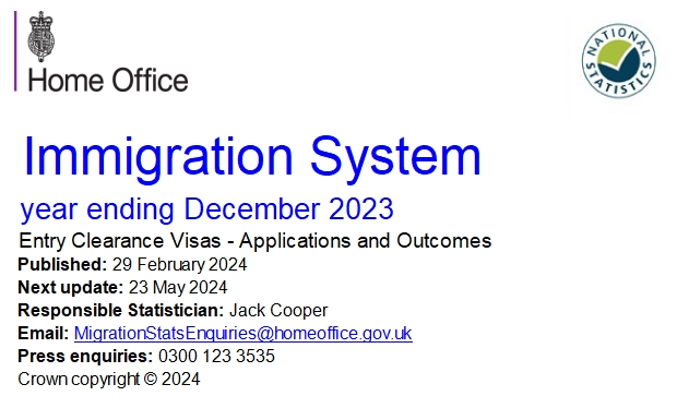英国内政部发布了最新的2023年度签证数据报告,下次的更新时间为2024年5月23日。