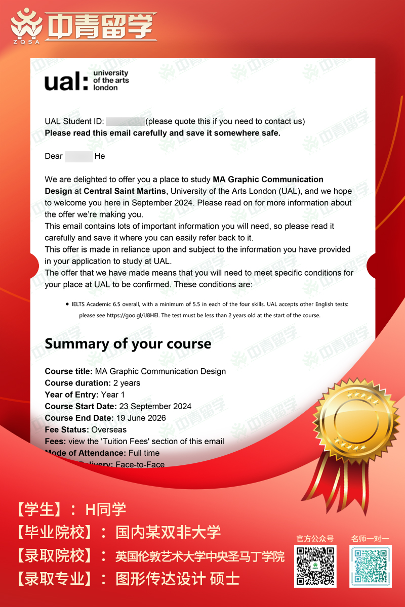 【录取院校】:英国伦敦艺术大学中央圣马丁学院
