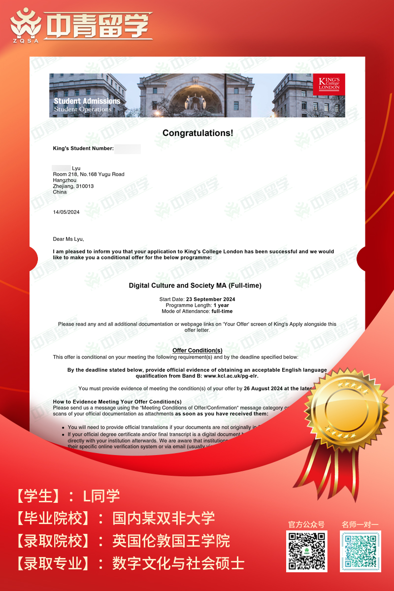 【录取院校】:英国伦敦国王学院