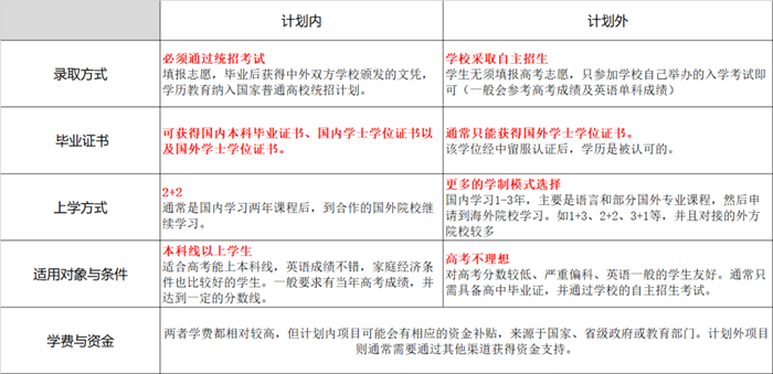简单来说,根据招生方式的不同,中外合作办学分为计划内和计划外两大类。