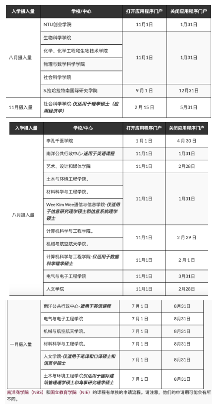 教育学院(NIE):8月入学开放时间为11月-明年1月,1月入学开放时间为前一年5月-7月