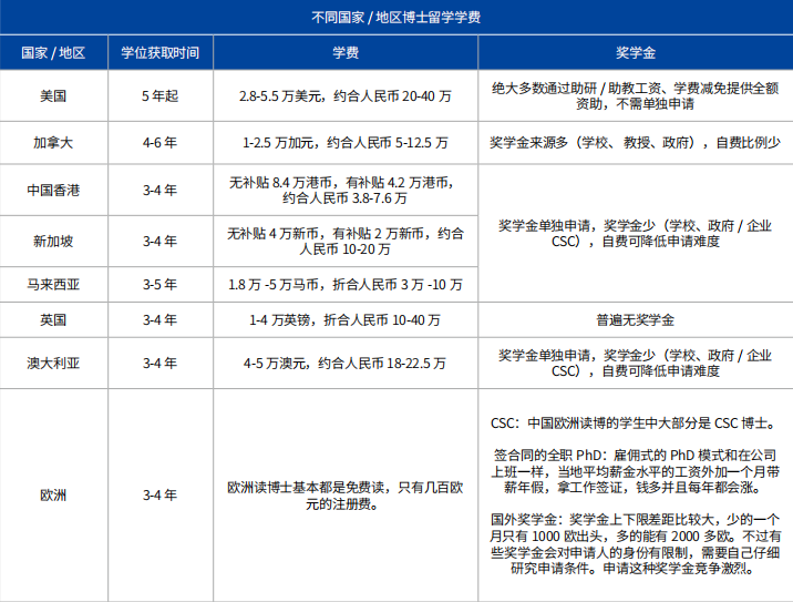 每个国家读博的花费不同,每个专业申请奖学金的难度也不同,在申请前必须结合自己的情况和规划,了解清楚。