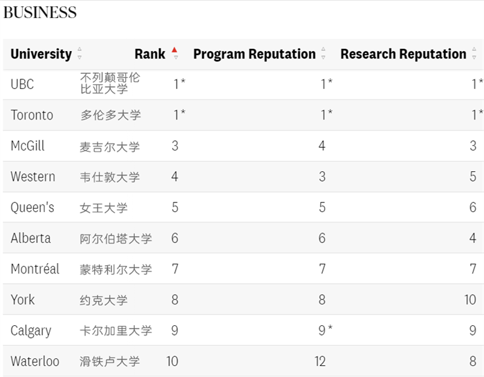 基础类大学排名榜单变化较大。Top3依旧是蒙特爱立森大学、北不列颠哥伦比亚大学、圣玛丽大学,其他Top10学校的名次则都有变化。