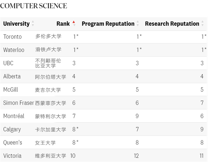 在综合类大学排名中,前三名依旧没有变动,西蒙菲莎大学已经连续多年蝉联综合类大学冠军宝座,其人机交互HCI、计算机科学、和商科专业位居世界前列。维多利亚大学和滑铁卢大学分别位列第二和第三。