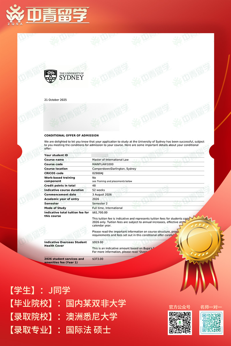 【录取院校】:澳洲悉尼大学