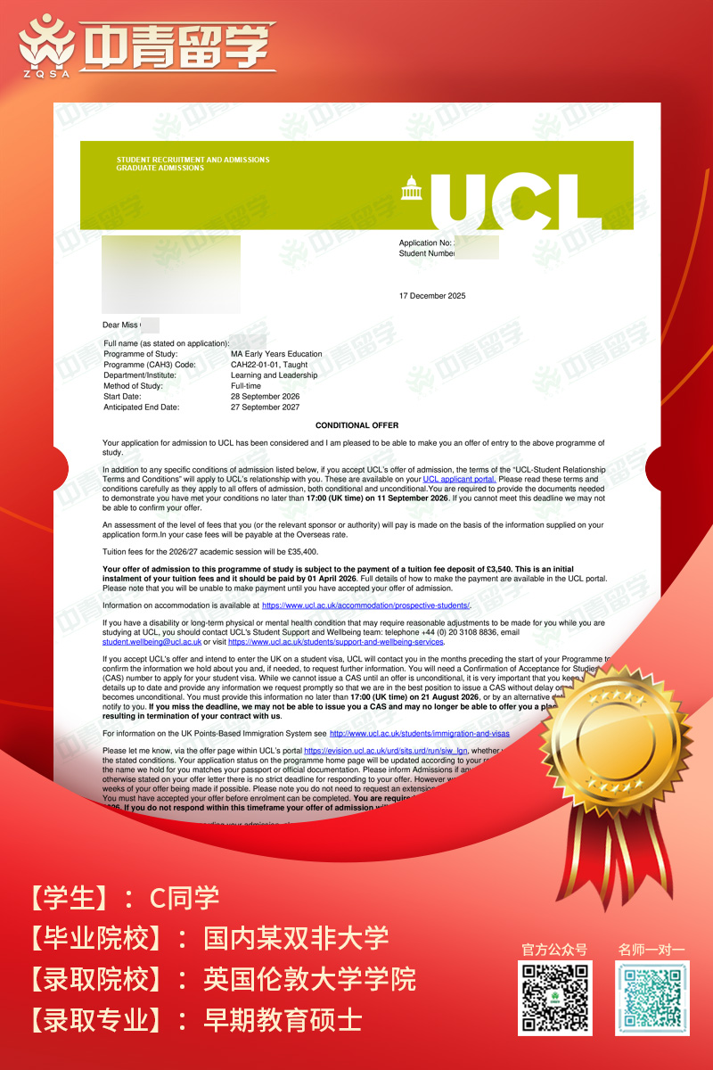 C同学——英国伦敦大学学院