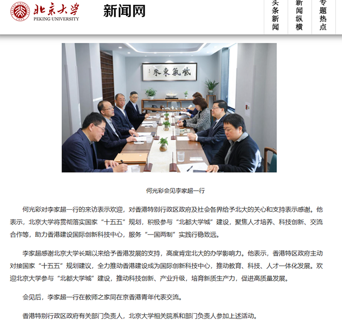 近期,香港特首李家超结束了在北京的述职行程。返回香港前,李家超与北京大学党委书记何光彩会面并做交流。