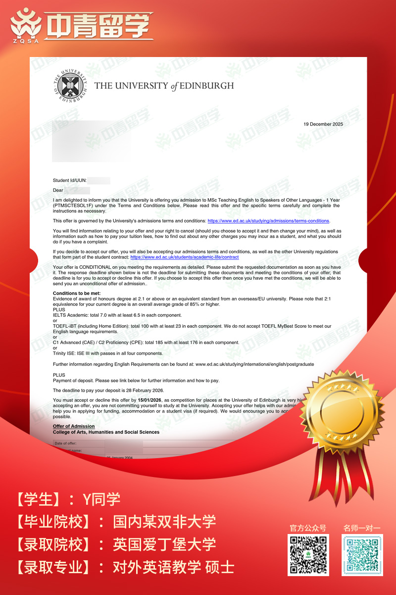 【录取院校】:英国爱丁堡大学