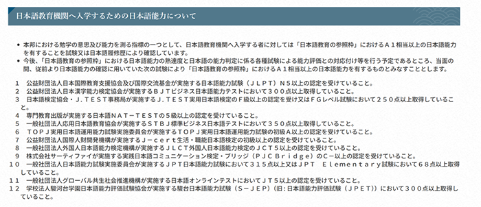 申请者必须通过以下两种方式之一,来证明自己具备相当于“日语教育参照框架A1级别”(大致等同于JLPT N5水平)的日语能力: