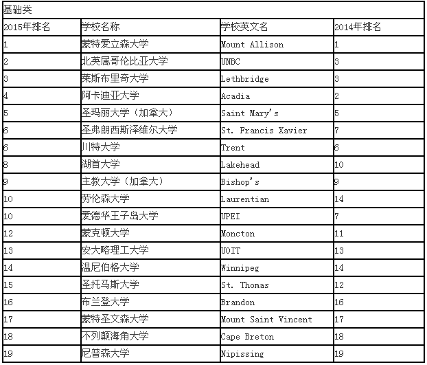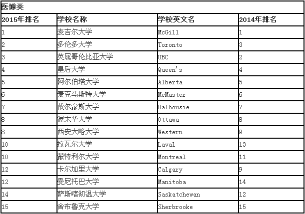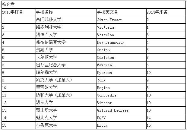 接下来我们再一起来看看2015年麦考林加拿大大学排名:
