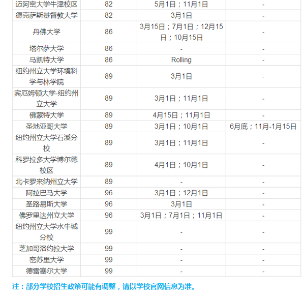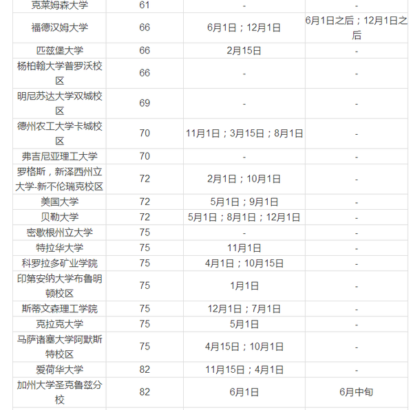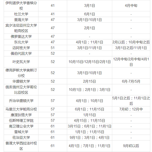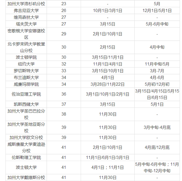 如今,越来越多国内的学生选择本科期间转学去美国,而不是等到研究生的时候再去,但是许多同学对于本科转学的申请细节了解不多,一些同学对于美国大学转学申请时间并不清楚,为此,我们按照2016U.S.News美国综合大学排名顺序对美国前100名学校本科转学申请截止日期、申请出结果日期进行了总结,希望对大家申请学校有所帮助。