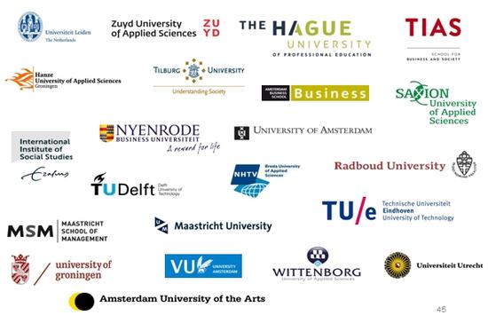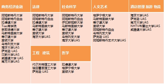 六所大学分别是:阿姆斯特丹大学商学院、Tias 商学院、奈耶诺德大学、马斯特里赫特大学管理学院、汉斯大学商学院、威腾堡大学。