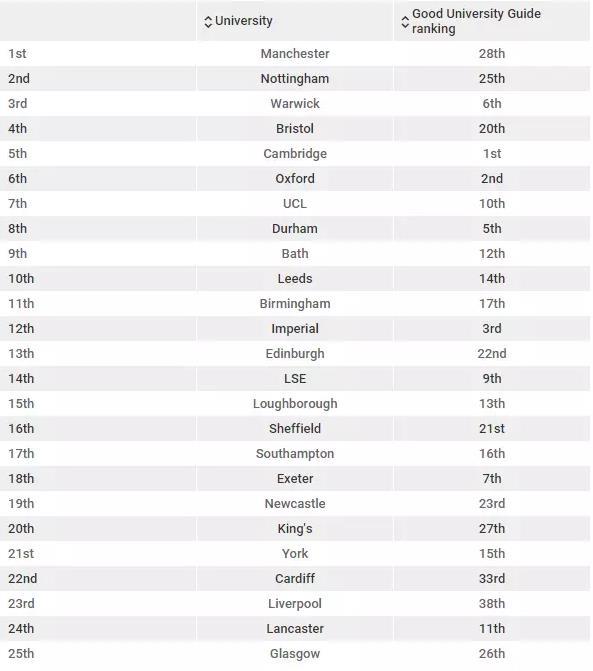 根据High Fliters毕业生调查报告,雇主最青睐的大学不是牛津剑桥这类顶尖学校,而是英国排名前20左右的一些学校。