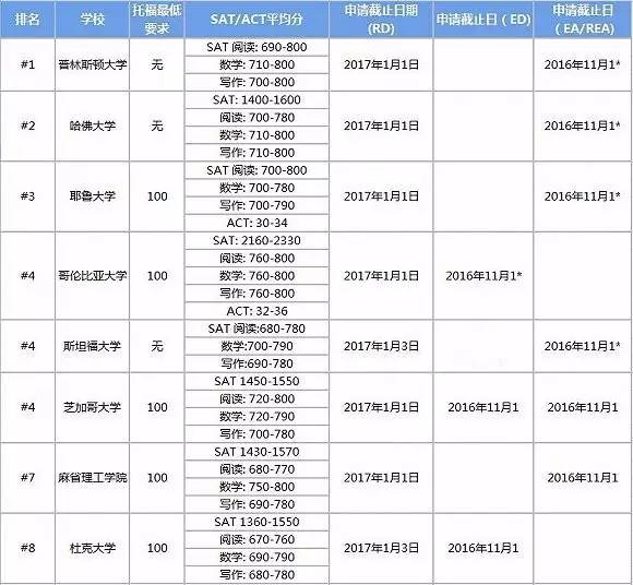 但是!要是你错过院校的申请截止时间该怎么办?是不是这样就前功尽弃了呢?是不是感觉自己一切准备和辛苦都白费了呢?为了避免这样不必要的低级错误错过申请截止时间,今天小编就为大家网罗美国本科申请中的早申请(Early Action) 早决定(Early Decision)和 常规申请(Regular Decision) TOP50院校的2017申请季的截止时间!相信对于广大申请者一定有用!