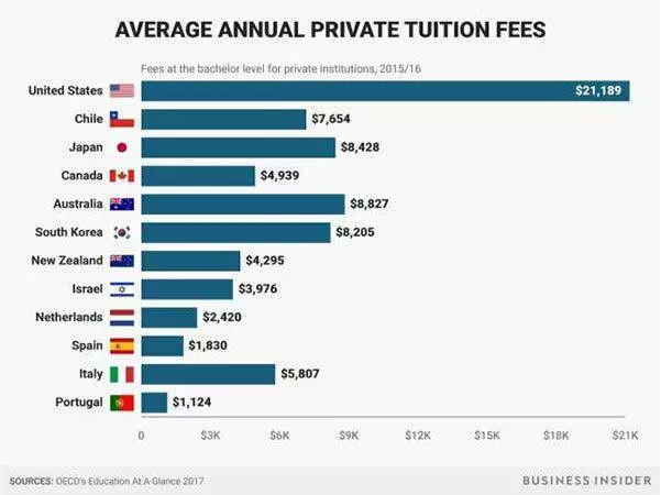 伴随着日益激烈的2018美国留学申请竞争,日前,世界经济合作与发展组织OECD发布了一项关于各国高等院校学费的调查,调查结果显示:美国留学毫无疑问成为出国留学费用最贵的国家。