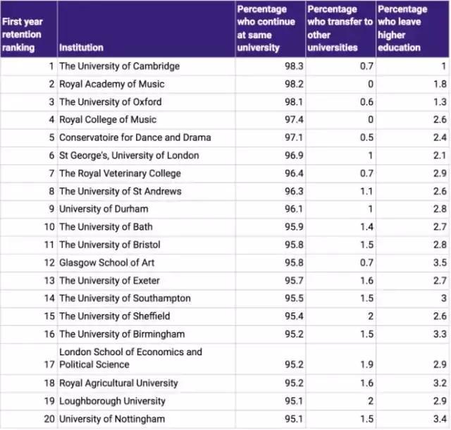 英国大学大一升大二通过率排行榜前20位,榜单如下。